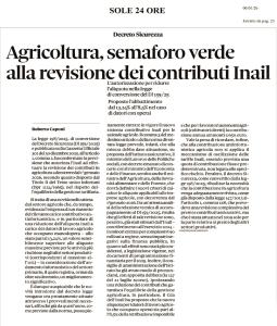 Agricoltura, semaforo verde alla revisione dei contributi Inail. Il direttore Caponi sul Sole 24 Ore